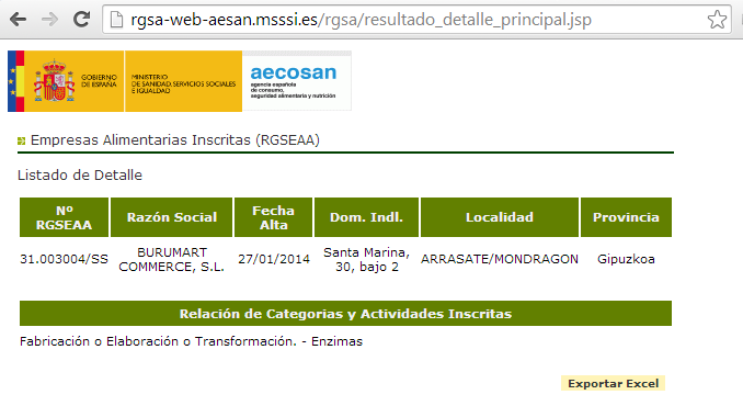 Para cercioraros podéis consultar nuestro registro sanitario en la web de AESAN ( Ministerio de Sanidad, Servicios Sociales e Igualdad ) Comprobar Registro Sanitario rellenando un simple formulario, bien introduciendo nuestro número de registro sanitario o bien nuestra razón social.